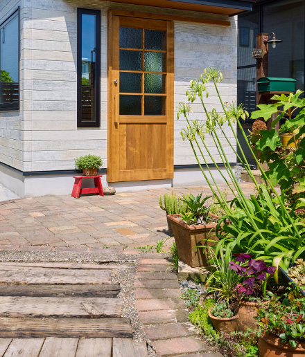 緑を暮らしの一部とする庭は、暮らしと切り離されたものではなく、日々の営みに豊かさをもたらす大切な存在です。季節ごとに色づく木々や草花、そよぐ風や鳥の声。そんな風景に包まれながら、家族と過ごすひとときには、何気ない時間さえも特別に変えてくれる力があります。太陽の道や風の流れを丁寧に読み取りながら、室内と屋外のつながりを大切にした設計を行うことで、自然とともにある心地よい暮らしをかたちにしています。