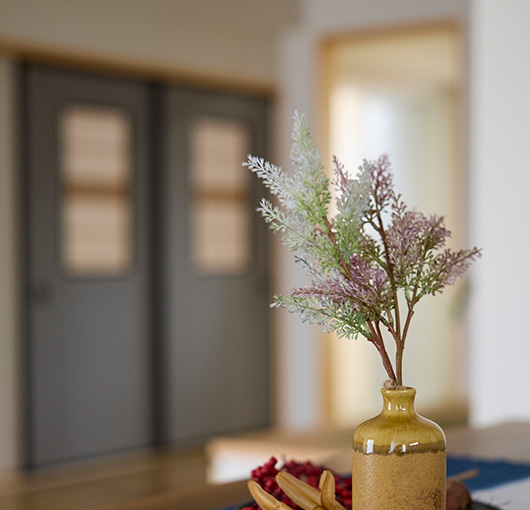 ただ明るいだけの空間では、心地よさは生まれません。優しい朝の光、障子越しの柔らかな午後の光、夕暮れ時に差し込む橙色の光と影。月明り。光は時間とともに表情を変え、住まいに豊かな景色をもたらします。窓の位置やサイズ、格子や障子の透け感、壁の質感や色までを丁寧に設計し、その家ならではの「光の景色」を描くことで、日々の暮らしがより豊かで潤いのあるものになります。季節ごとの移ろいを感じながら、光がもたらす心地よさを、住まいの中に取り込むことを大切にしています。