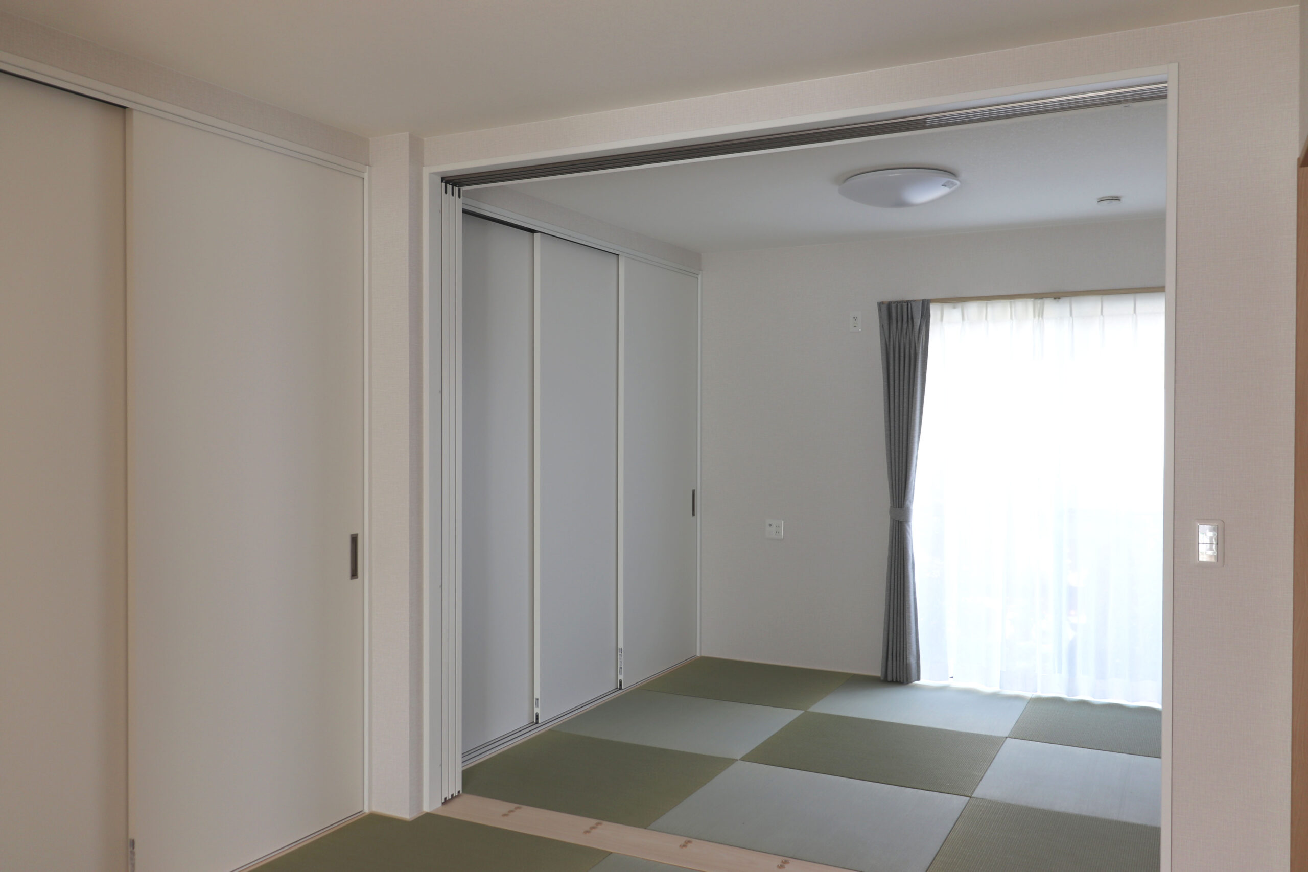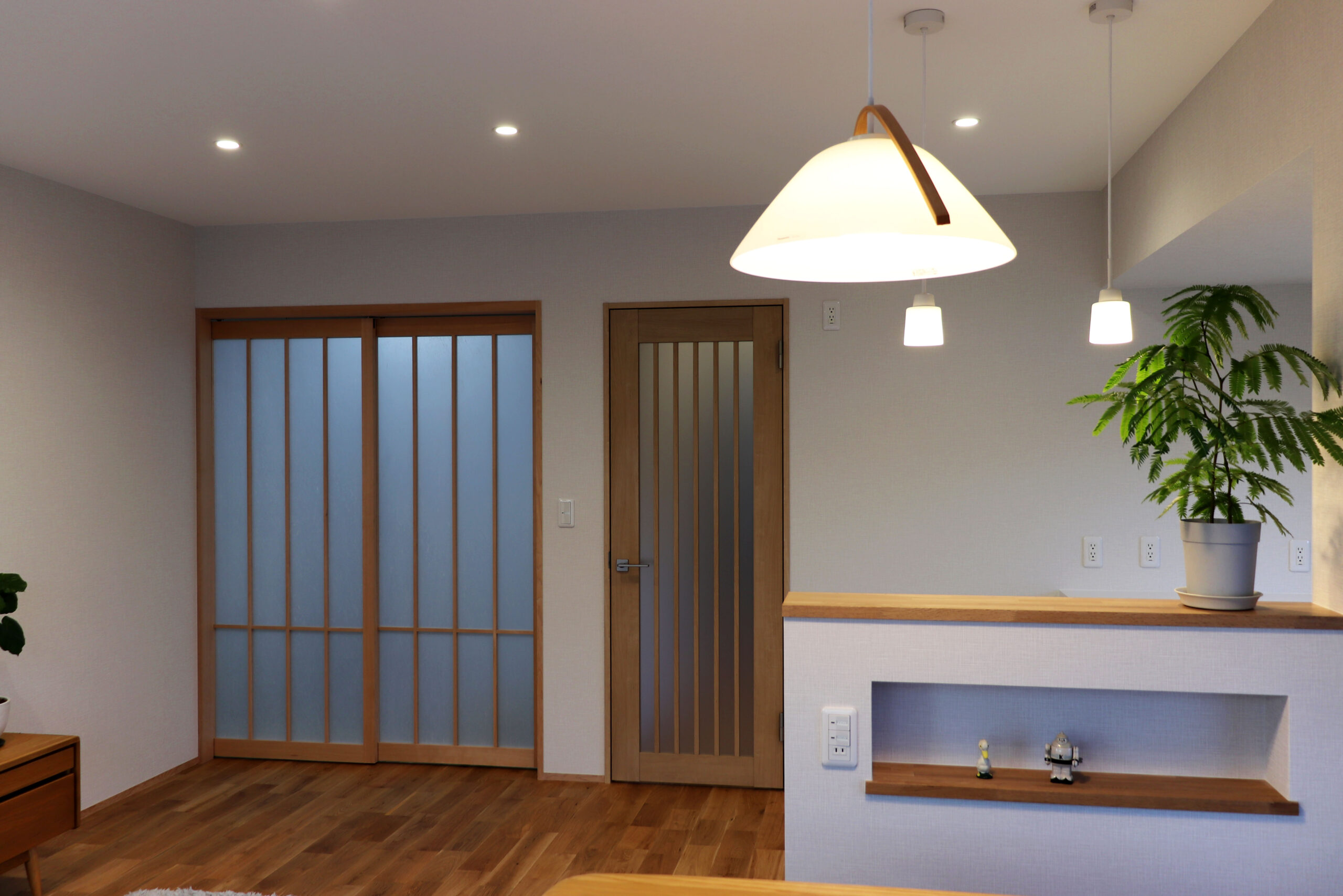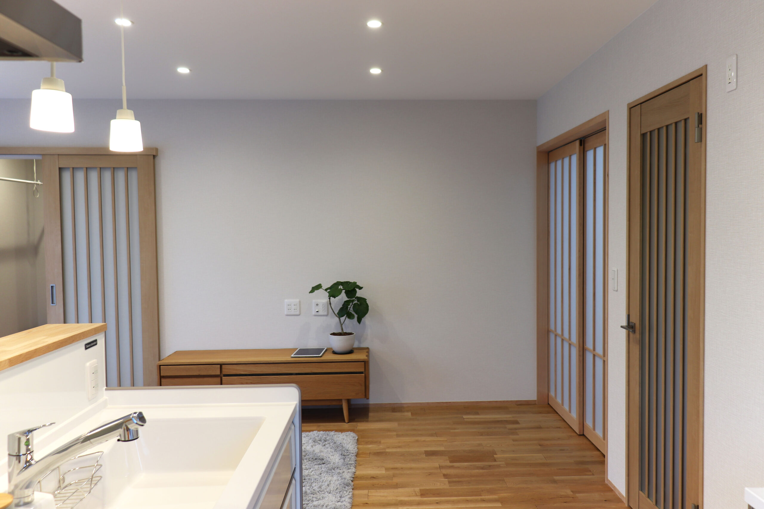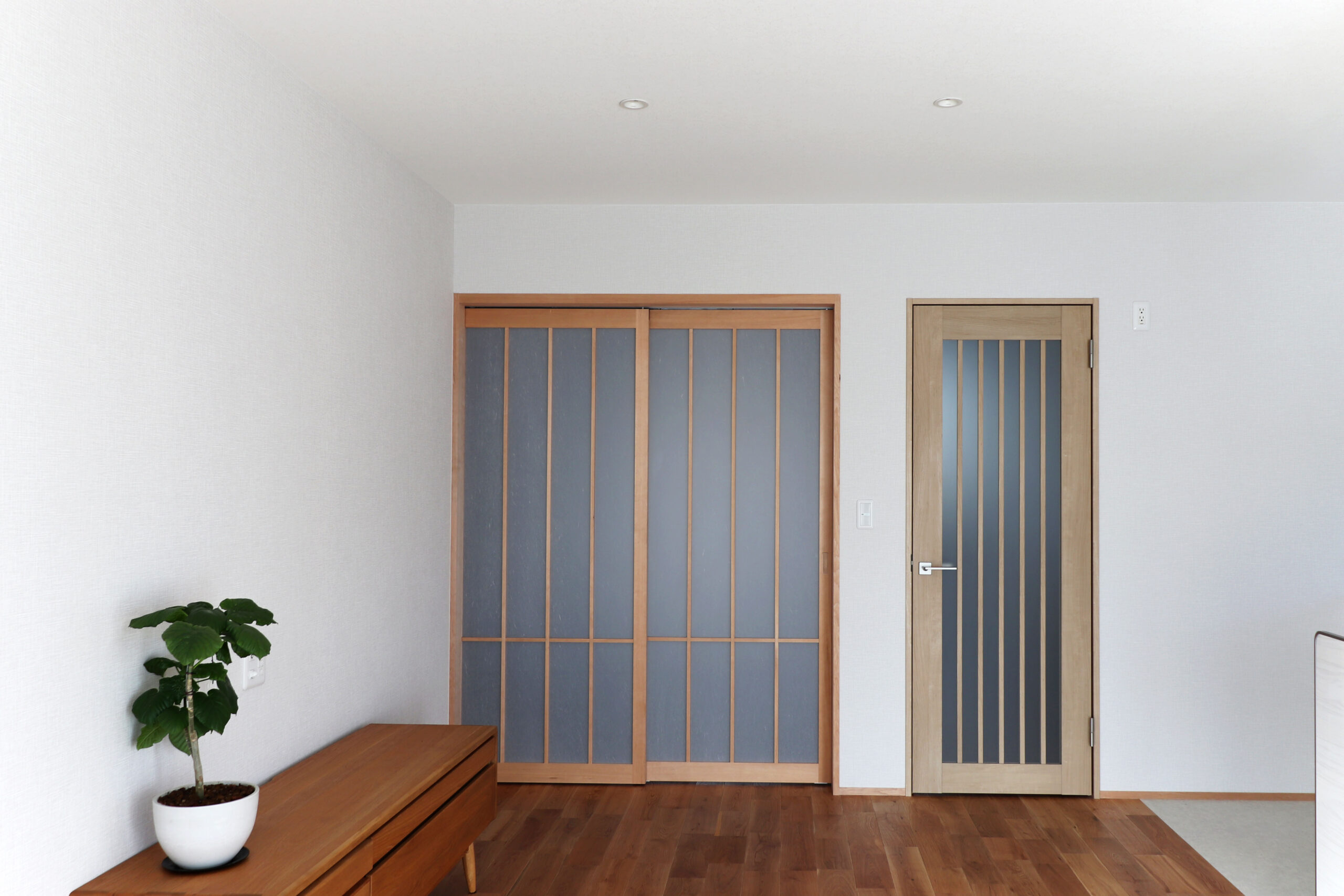 お子様が増えても大空間で遊べるようにリビングと畳スペースの間仕切りに普段は壁の中に引き込むことが可能な障子戸を設けました。