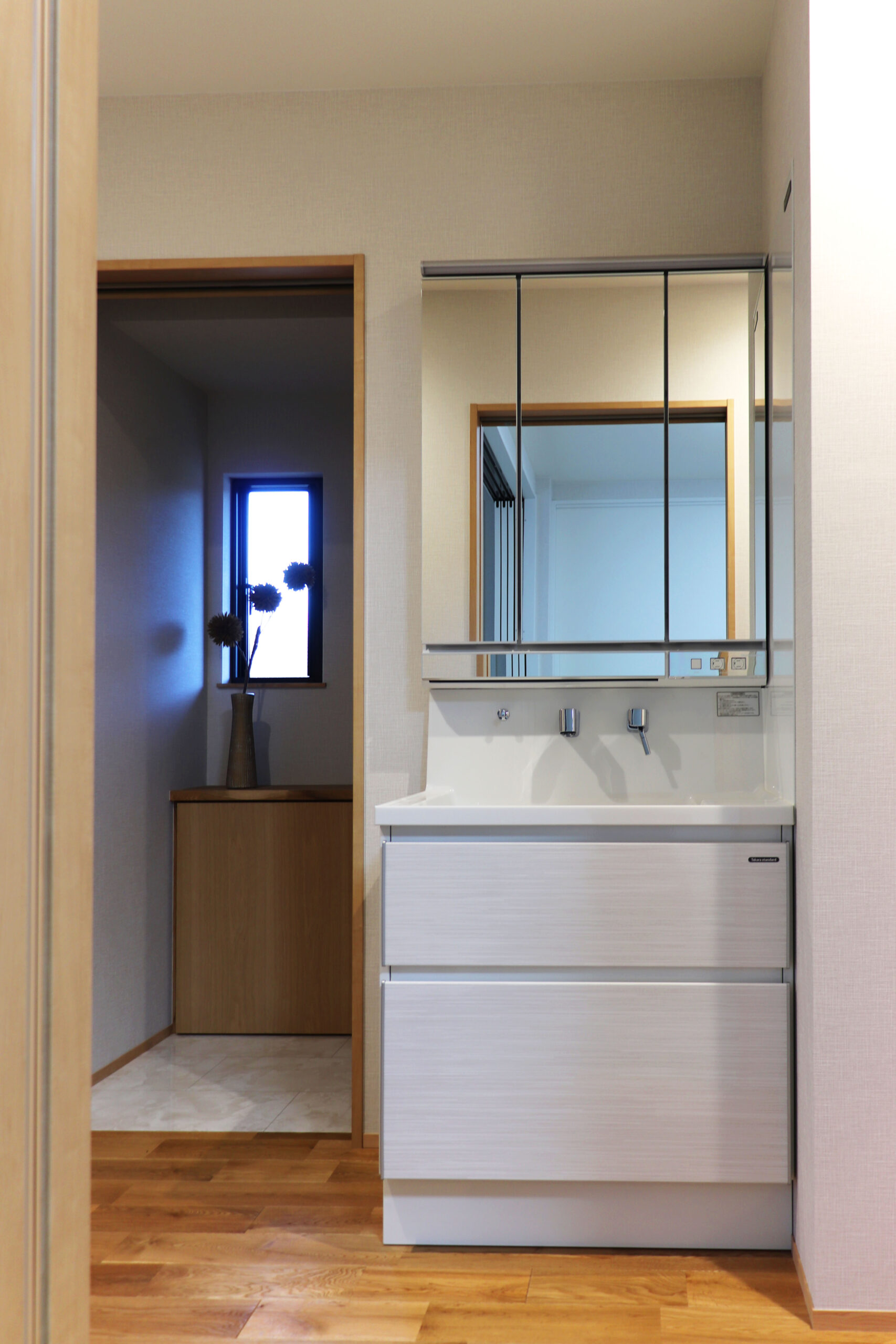 共働きのご夫婦が雨の日でも安心して洗濯を干せるようにランドリースペースをリビングとの続きに配置しました。